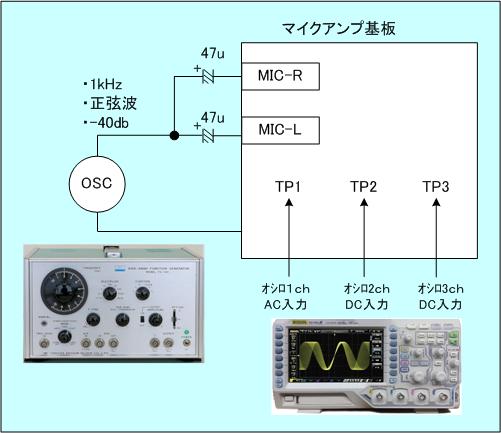 また、無信号状態でアンプ出力箇所(TP3)には100mv位の直流電圧がある。